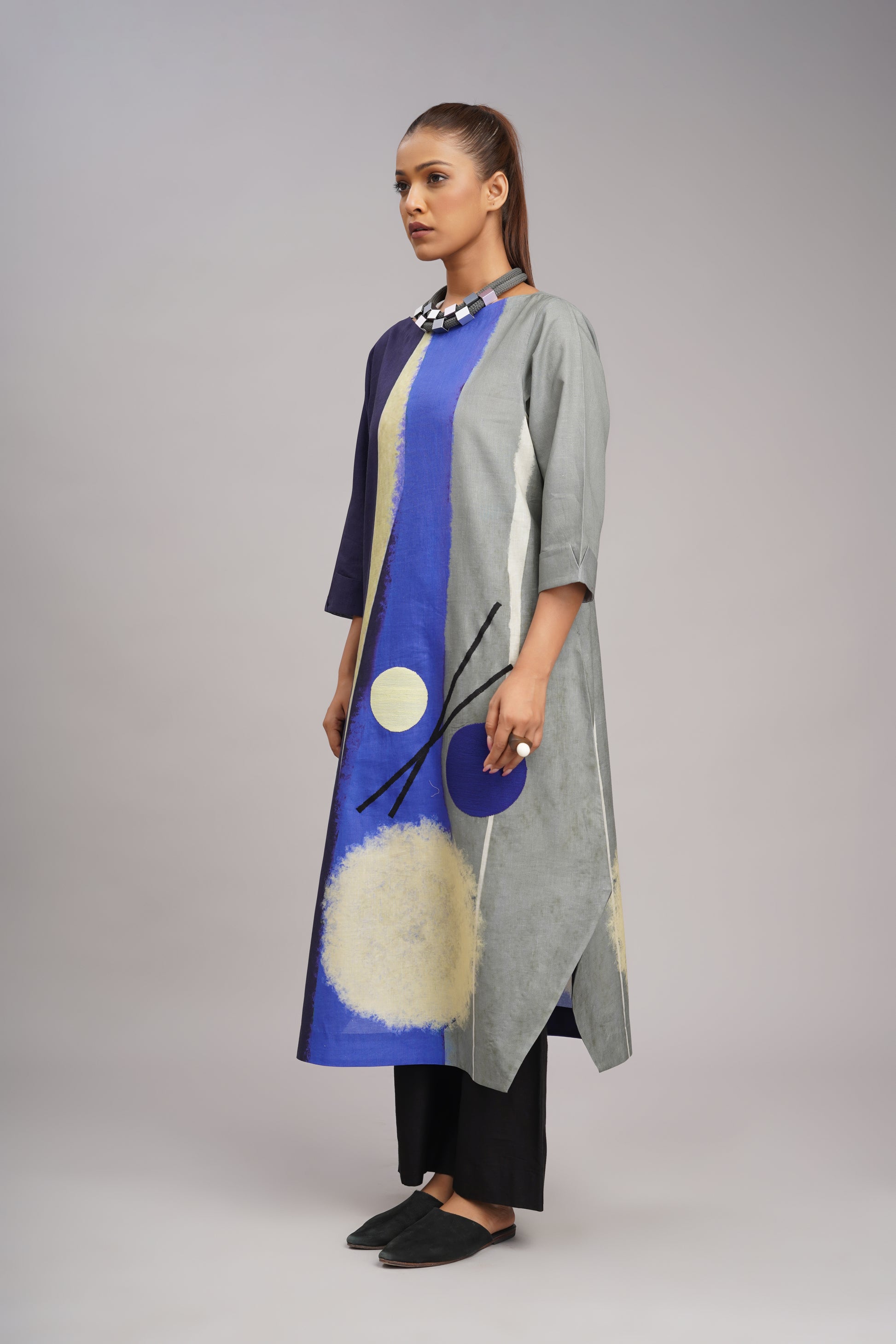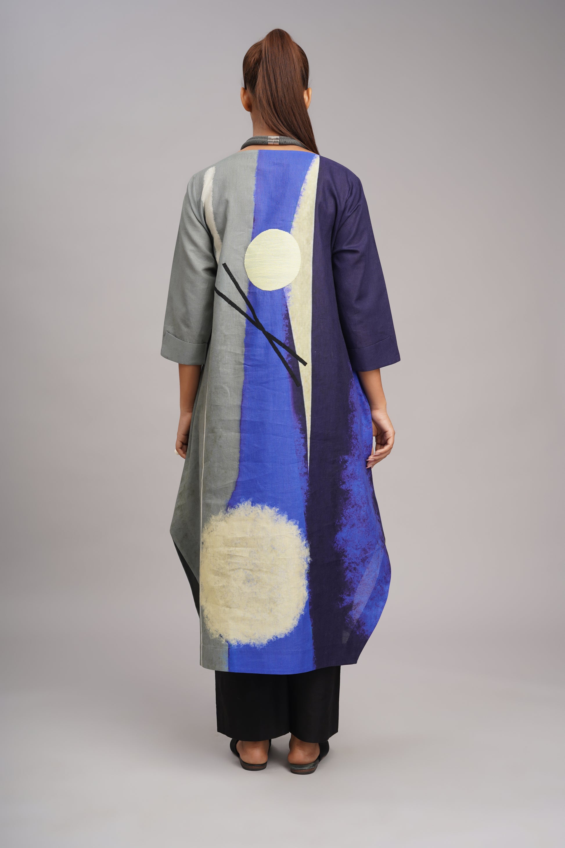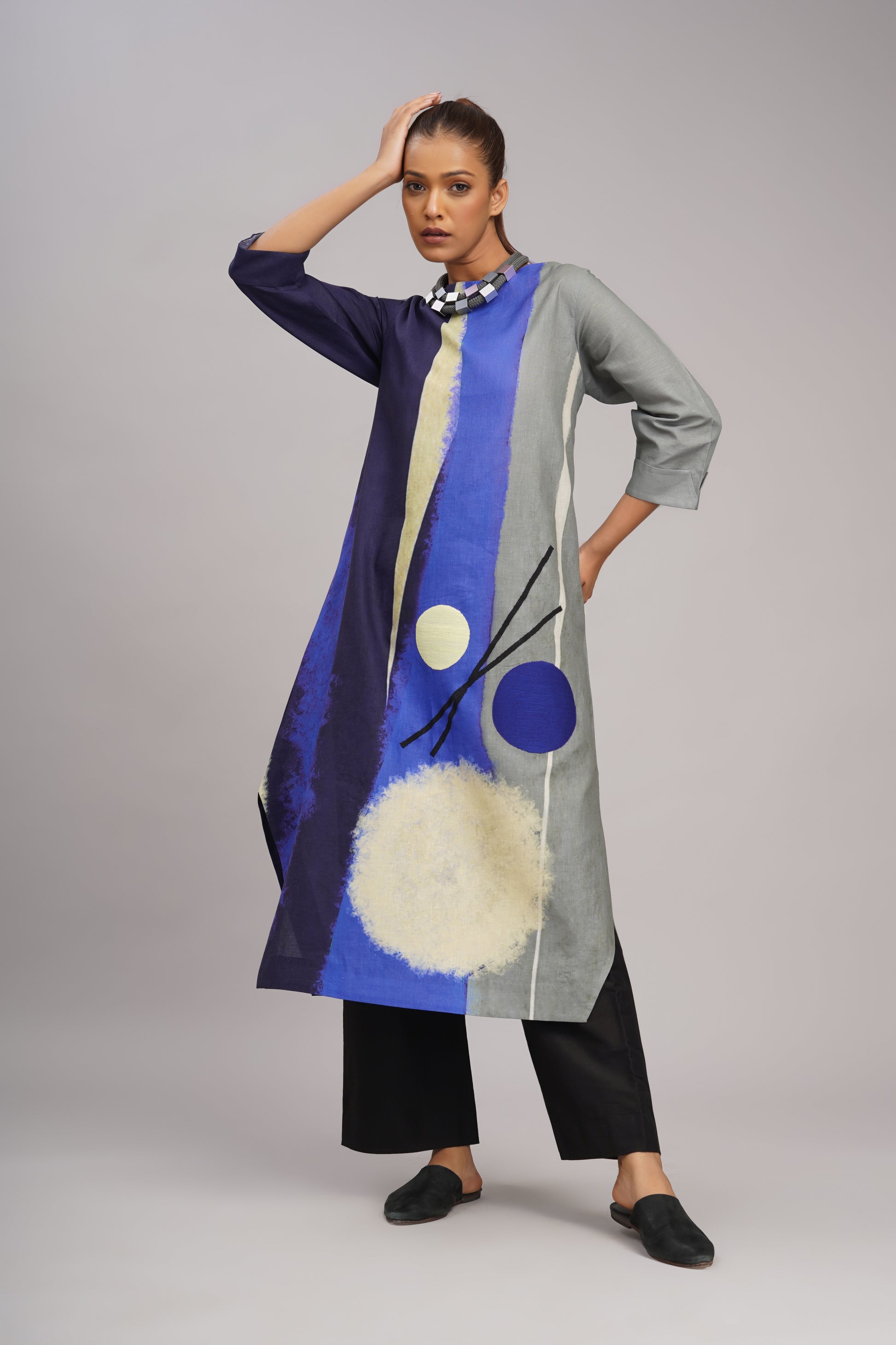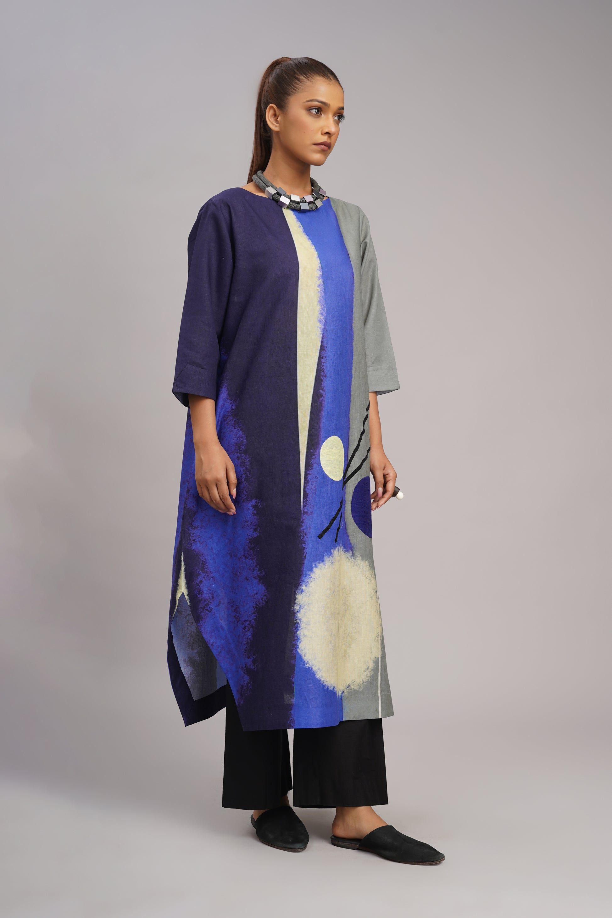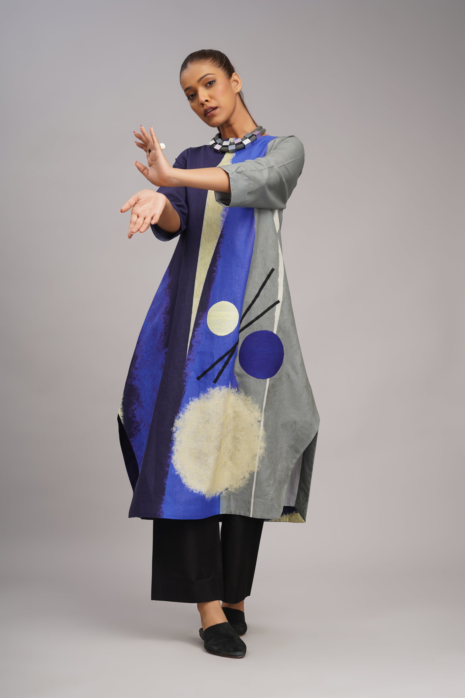 "Bold printed tunic with elegant embroidered design to make a statement. Dress it up or down with or without pants for a sophisticated, modern look."